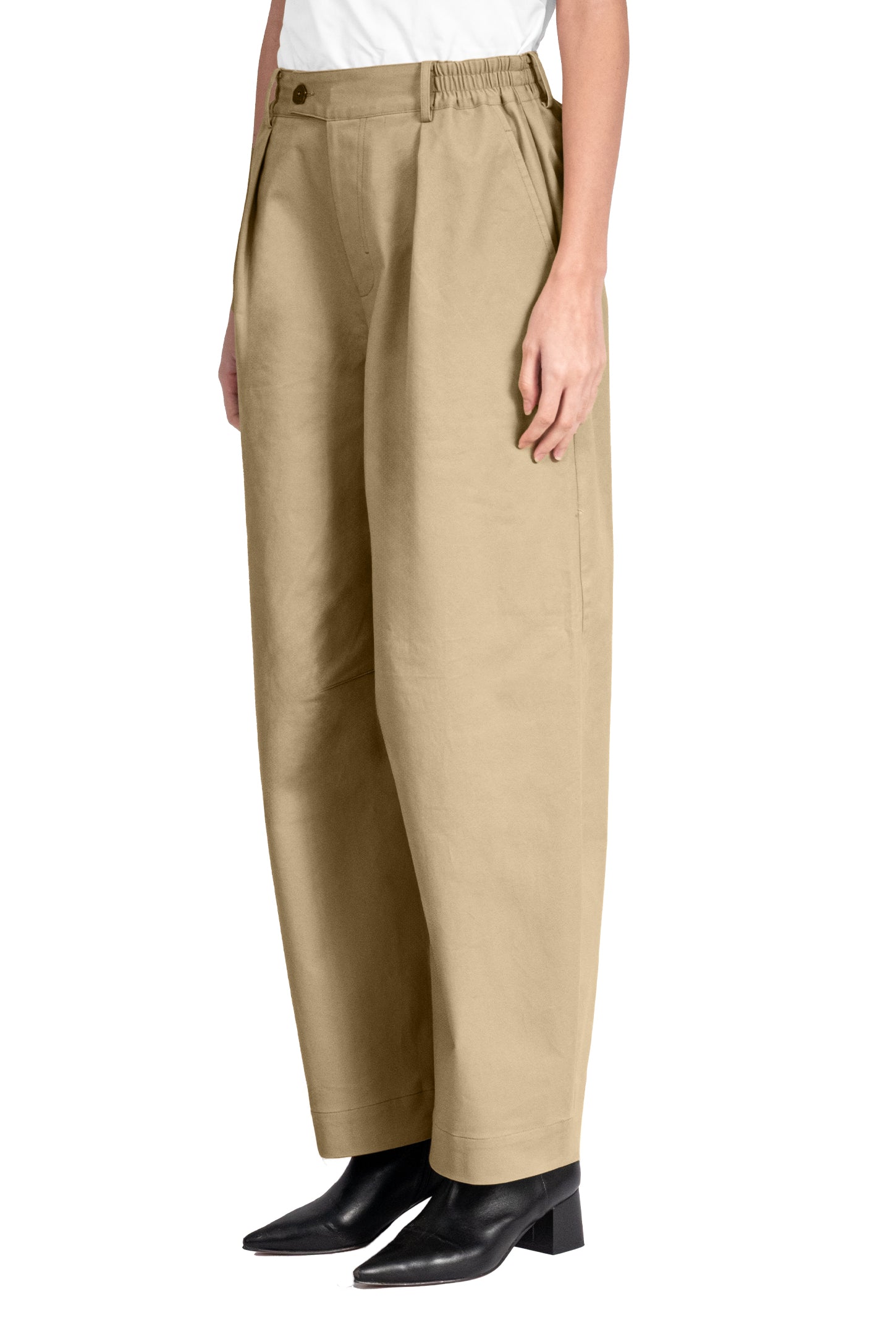Fits true to size. Intended for a relaxed fit and slightly tapered at the hem.