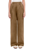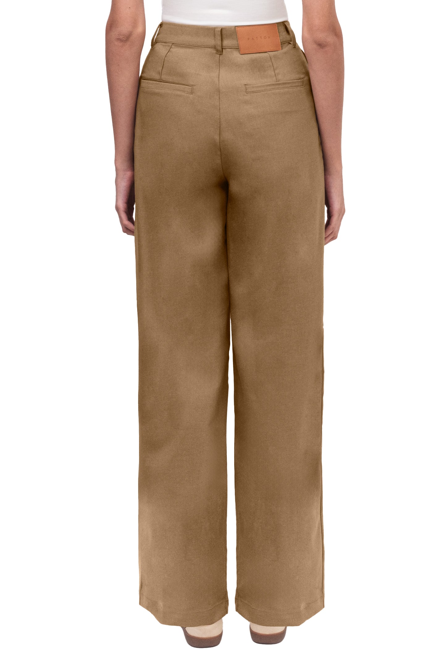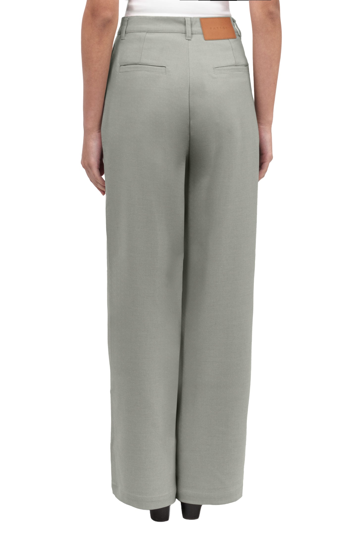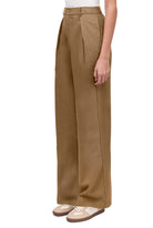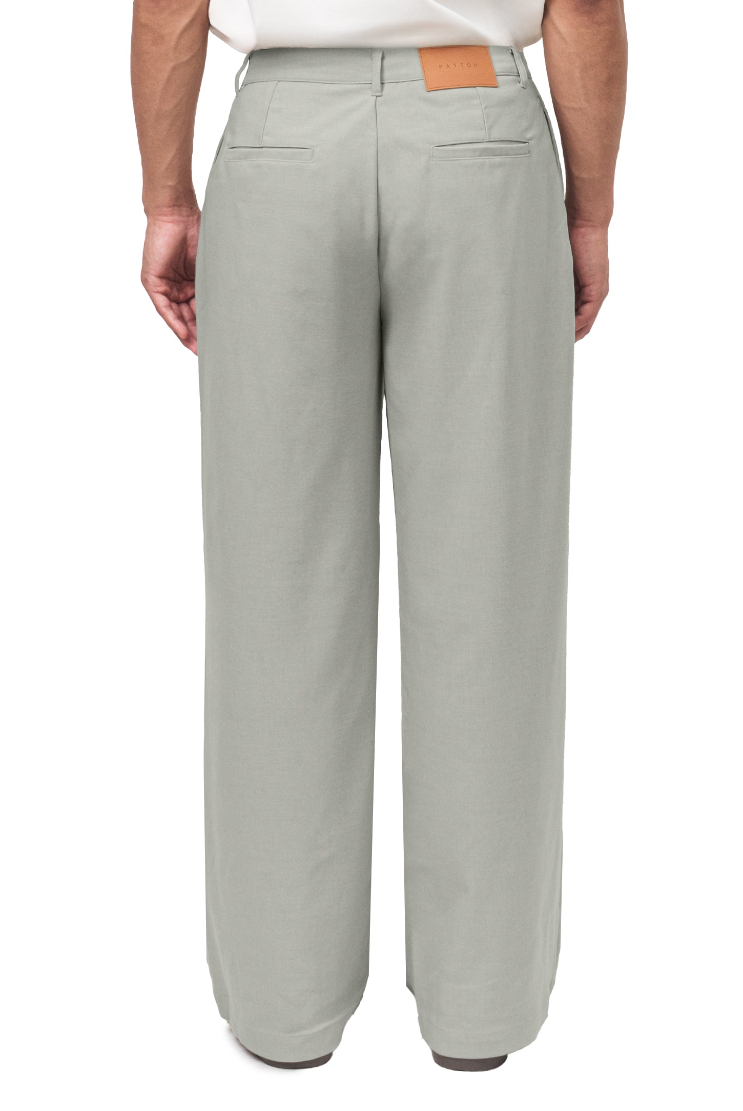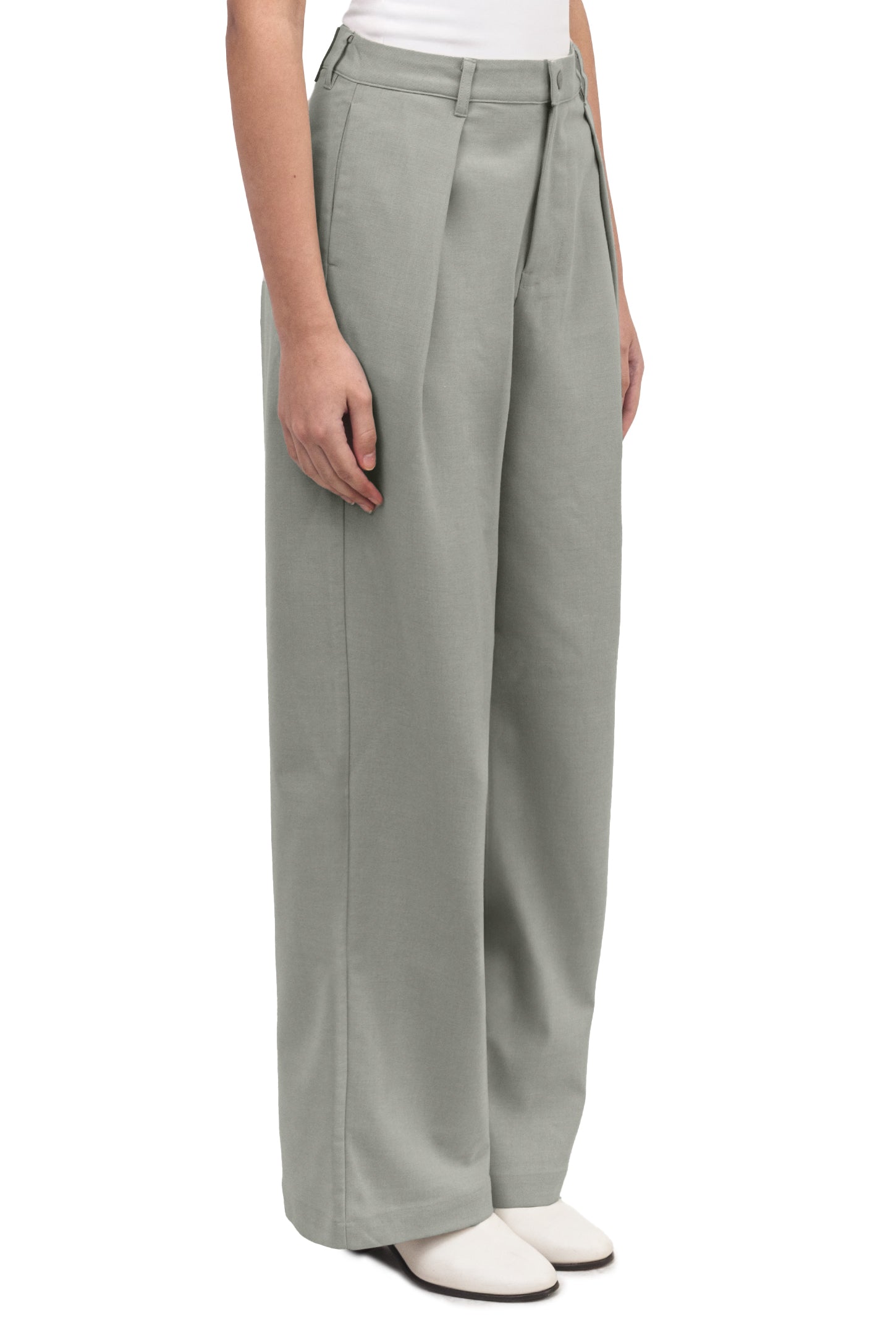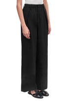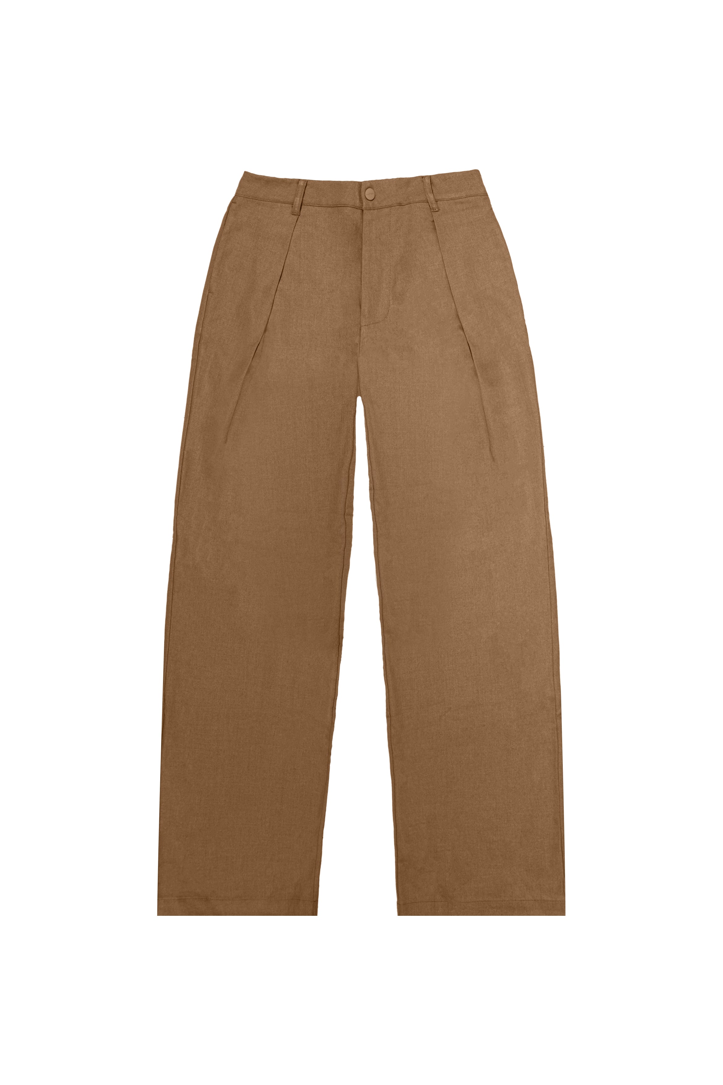 Relaxed-fit, mid-rise unisex trousers with a straight-leg fit and frontal pleats, featuring a snap button and zipper closure, side pockets and back welt pockets, belt loops, and a jacron label.