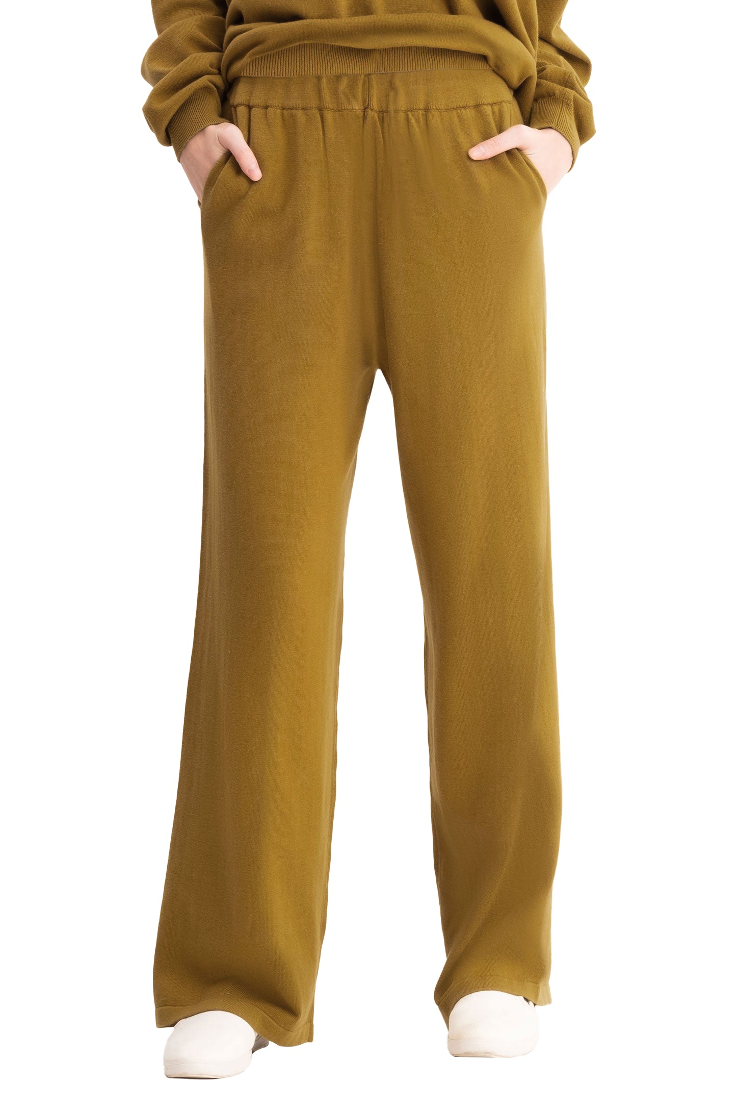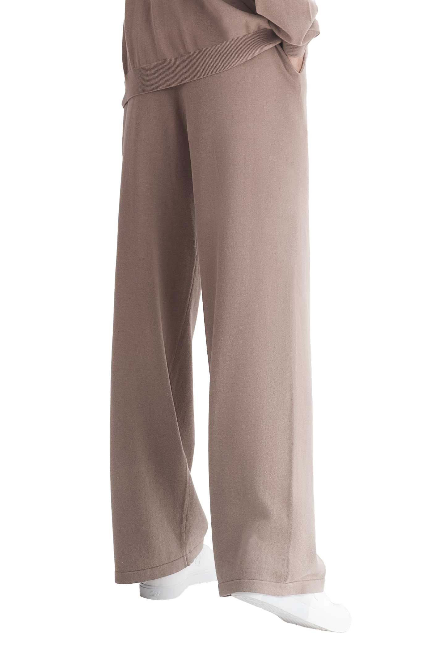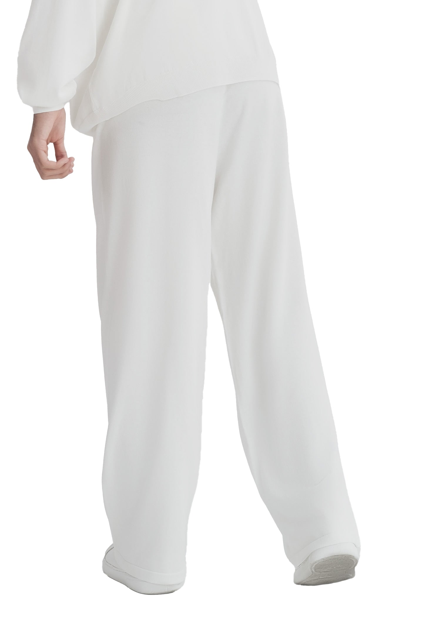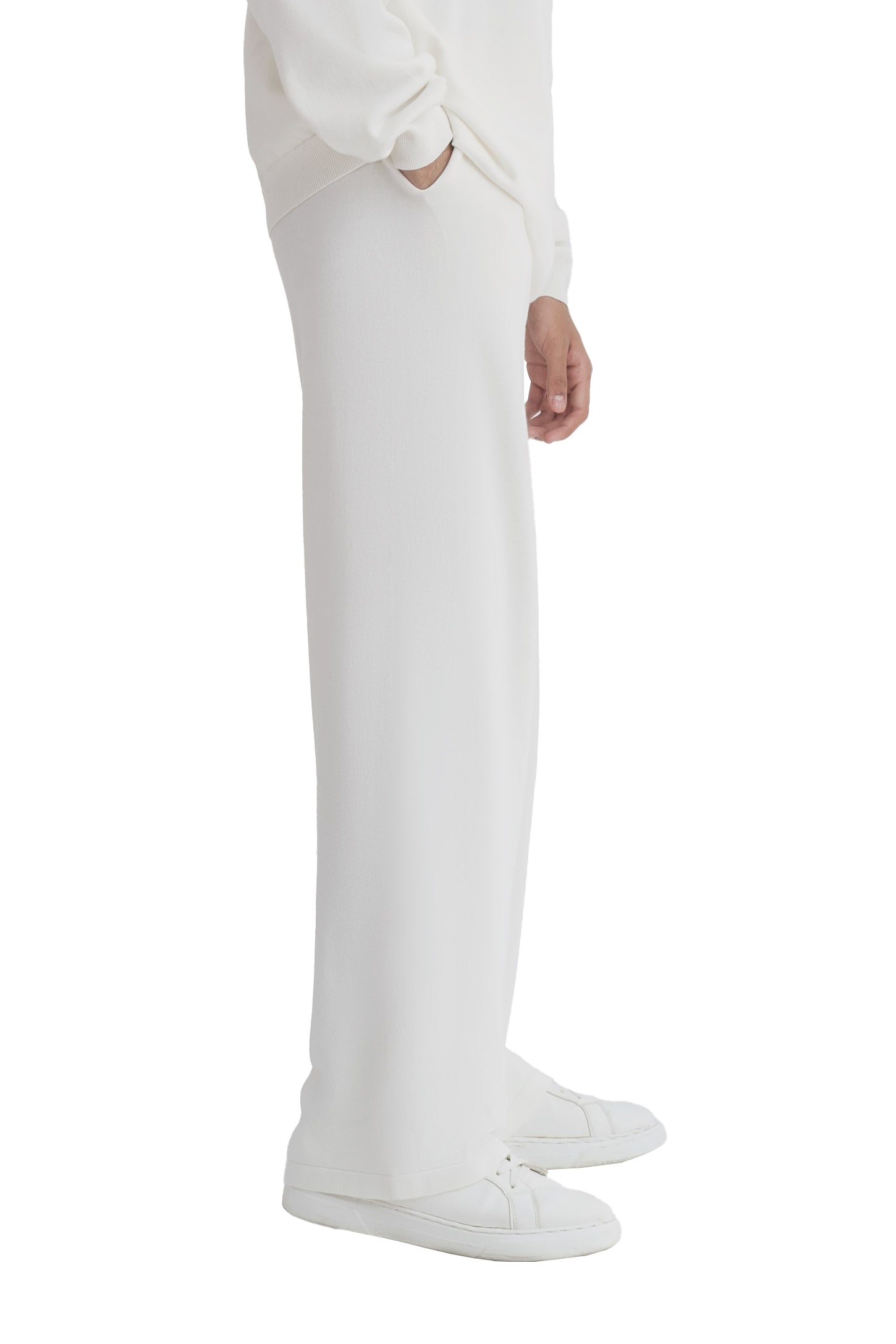 Unisex high-waisted knitted joggers with a loose, straight leg fit, side pockets, and adjustable drawstring waistband.