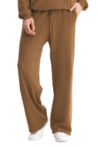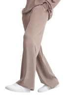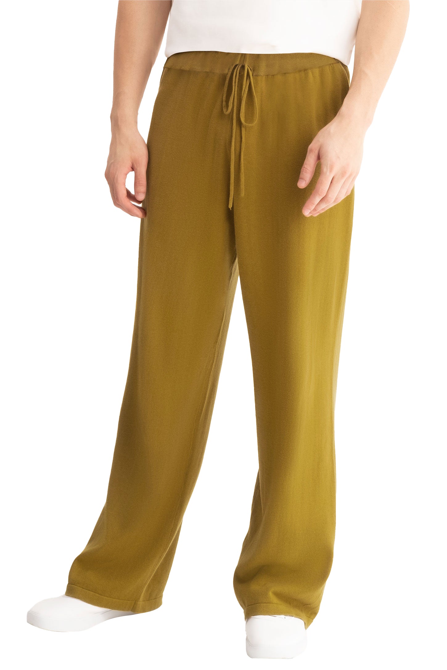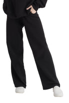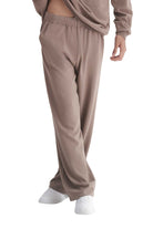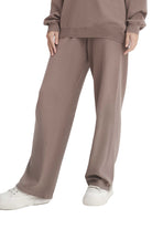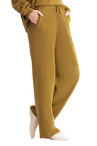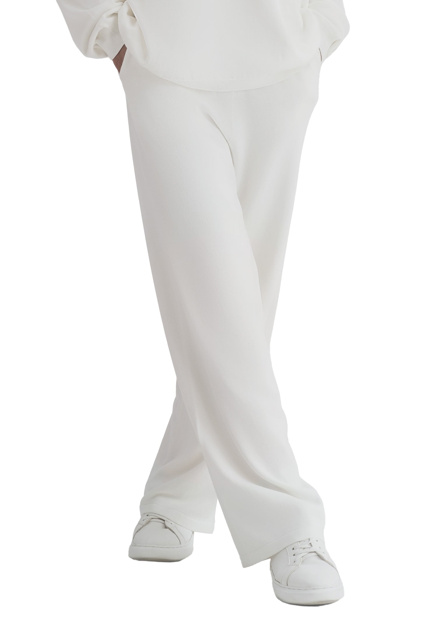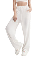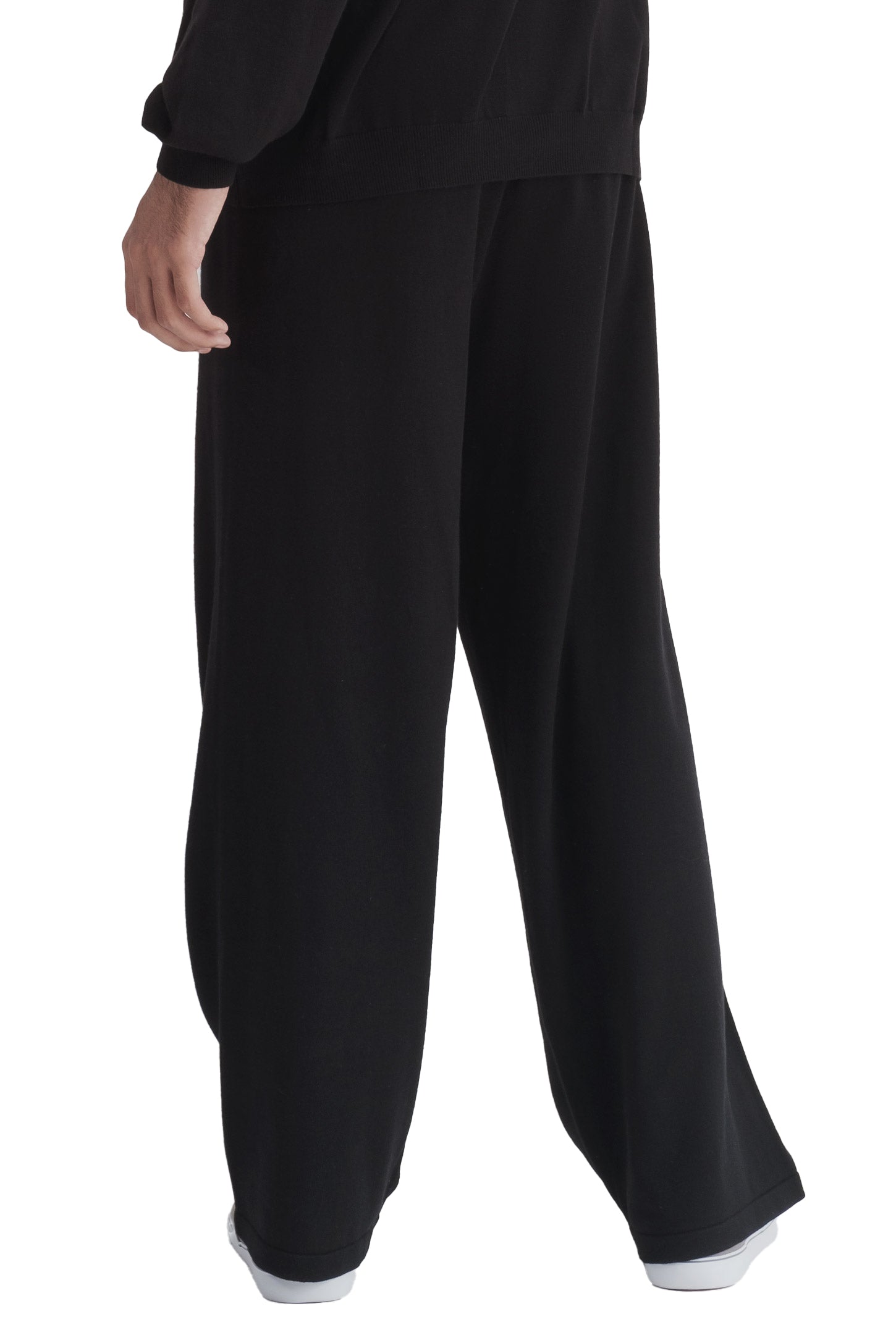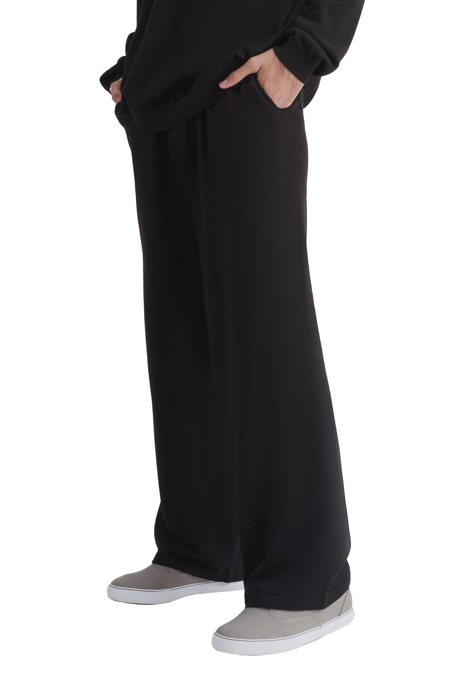 Unisex high-waisted knitted joggers with a loose, straight leg fit, side pockets, and adjustable drawstring waistband.