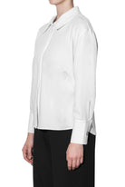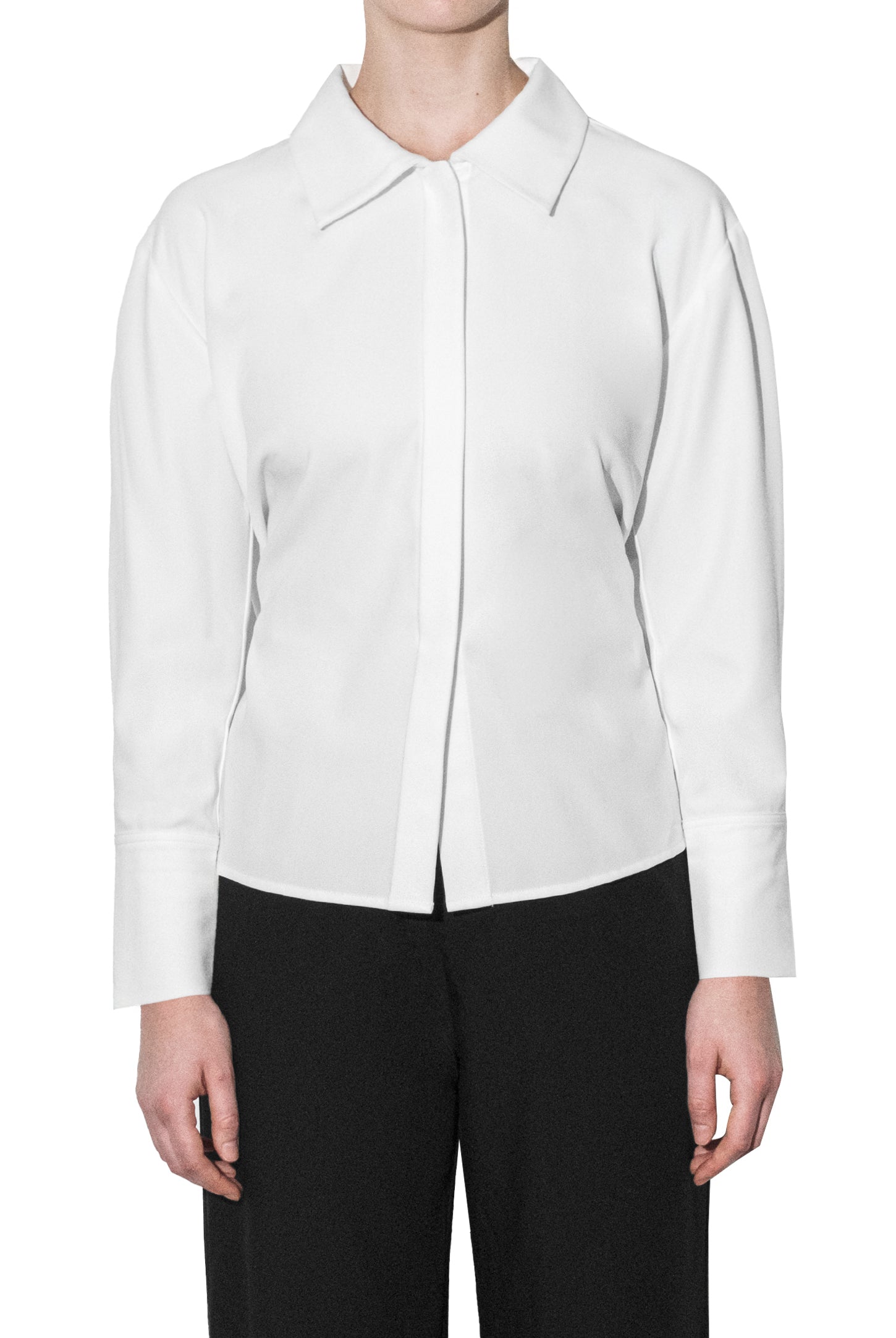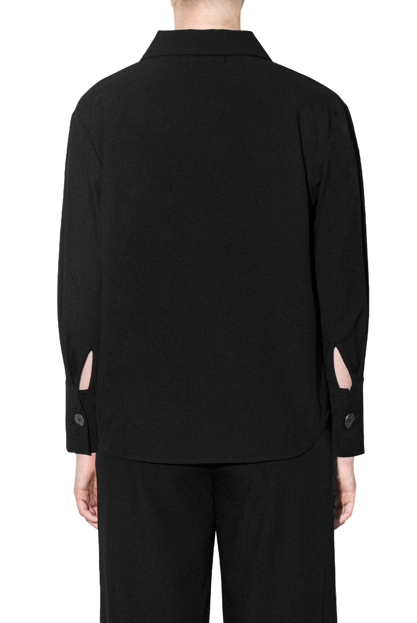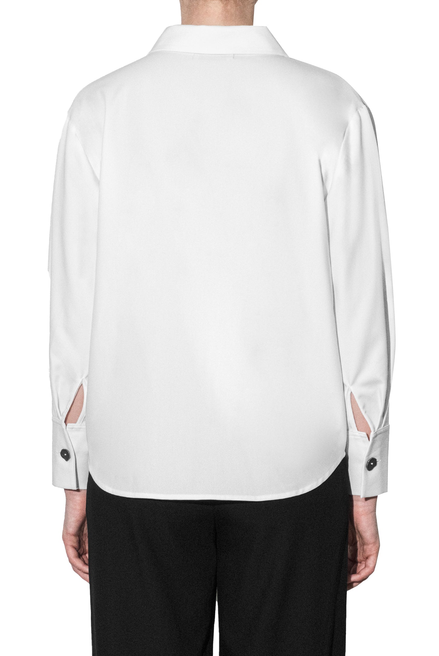 A relaxed-fit, long-sleeve, button-down shirt with an adjustable strap at the back to cinch the waist and metal logo-buttoned cuffs.