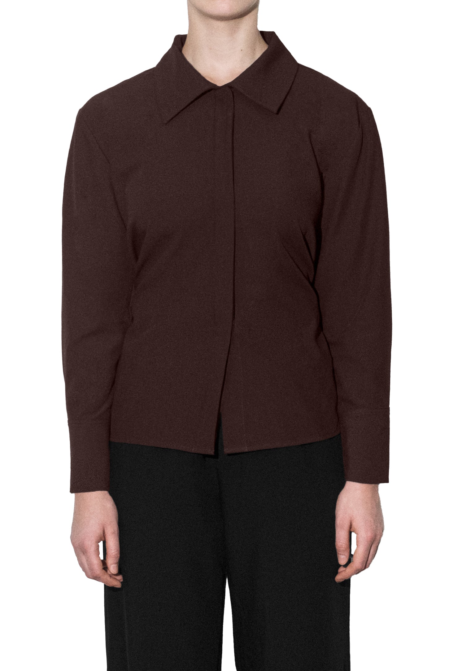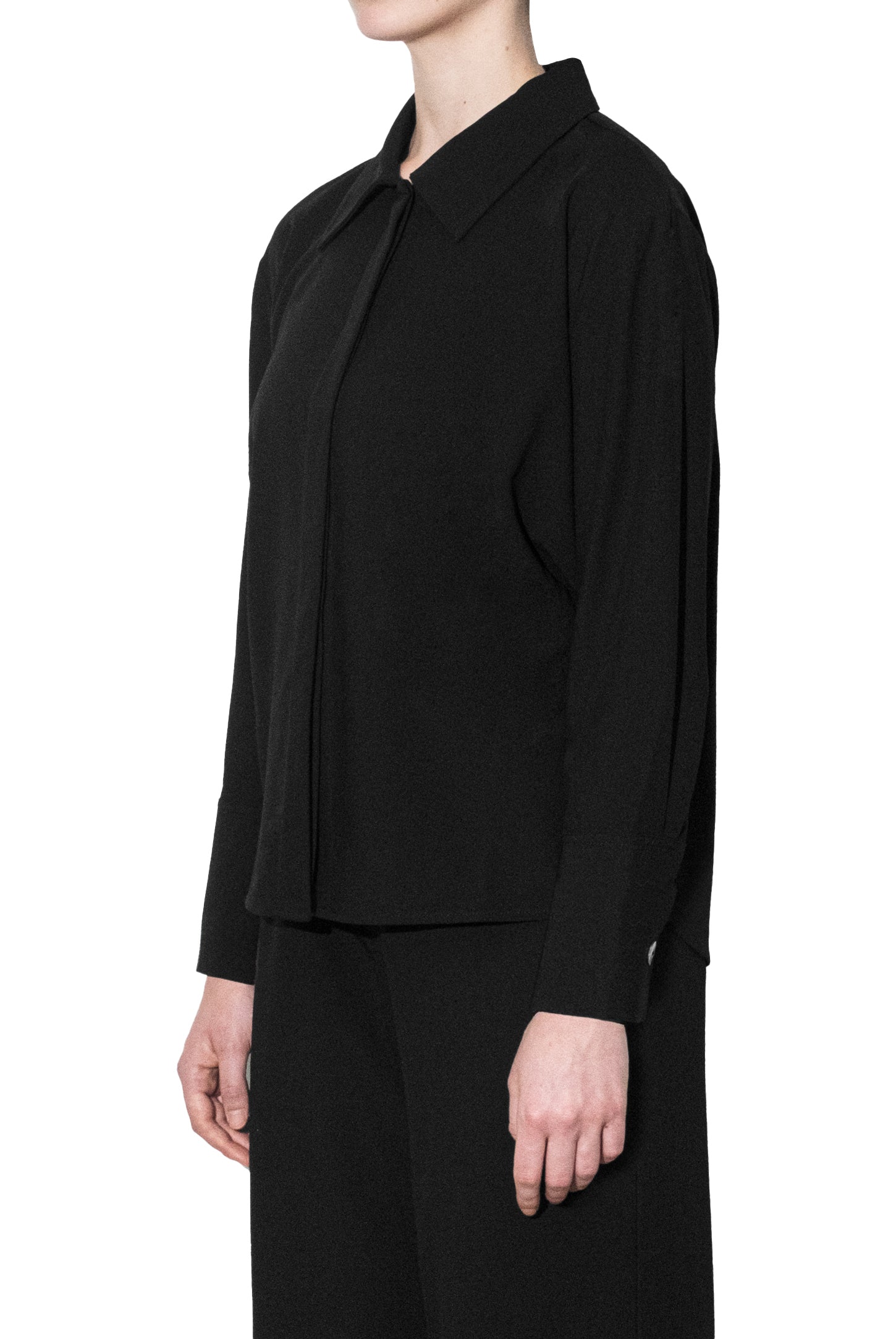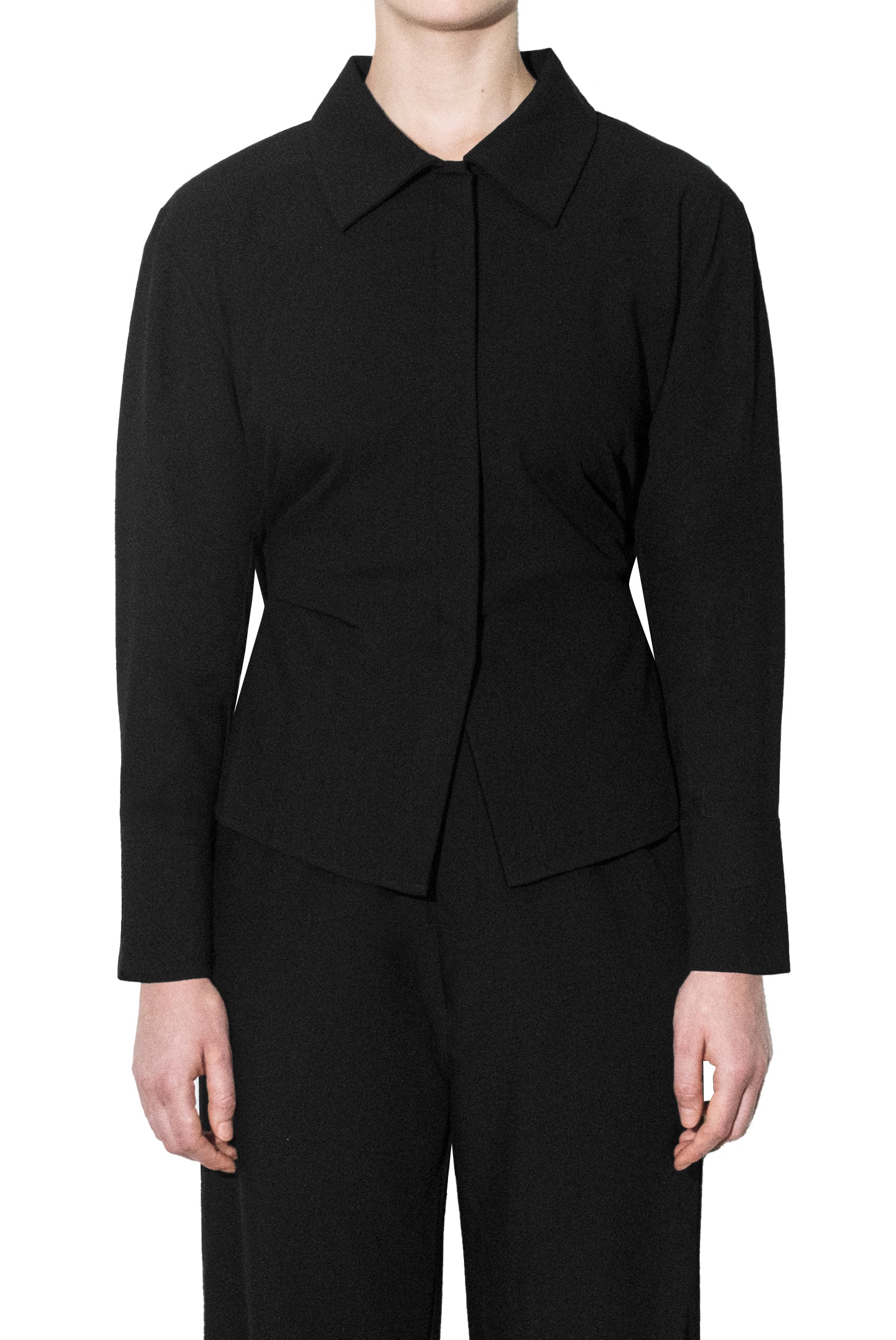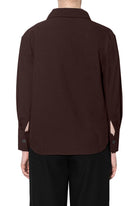 A relaxed-fit, long-sleeve, button-down shirt with an adjustable strap at the back to cinch the waist and metal logo-buttoned cuffs.