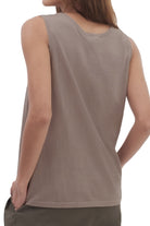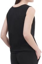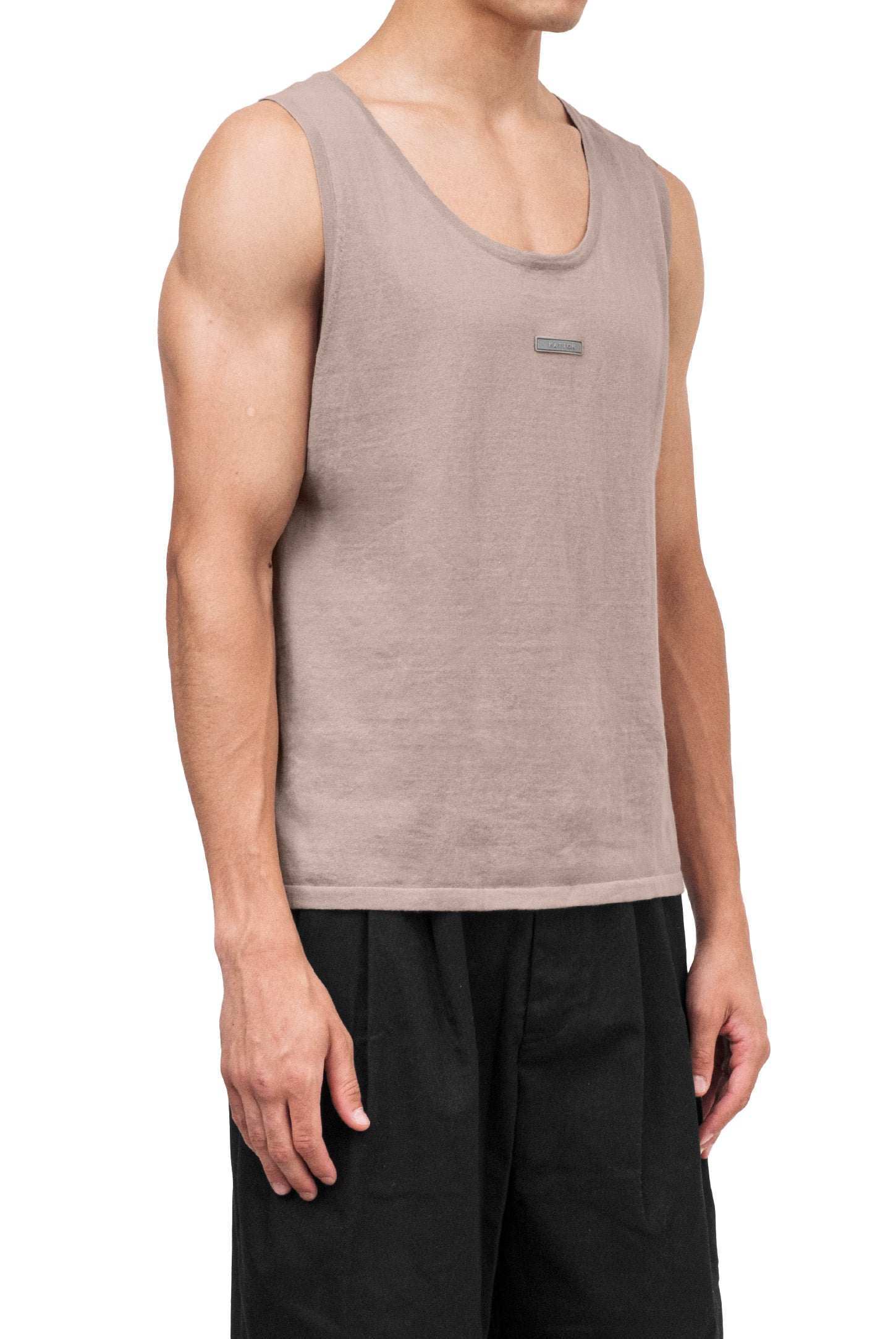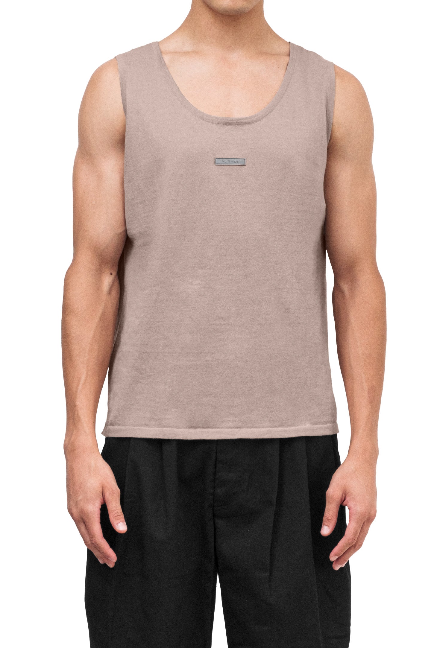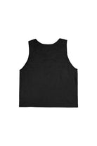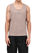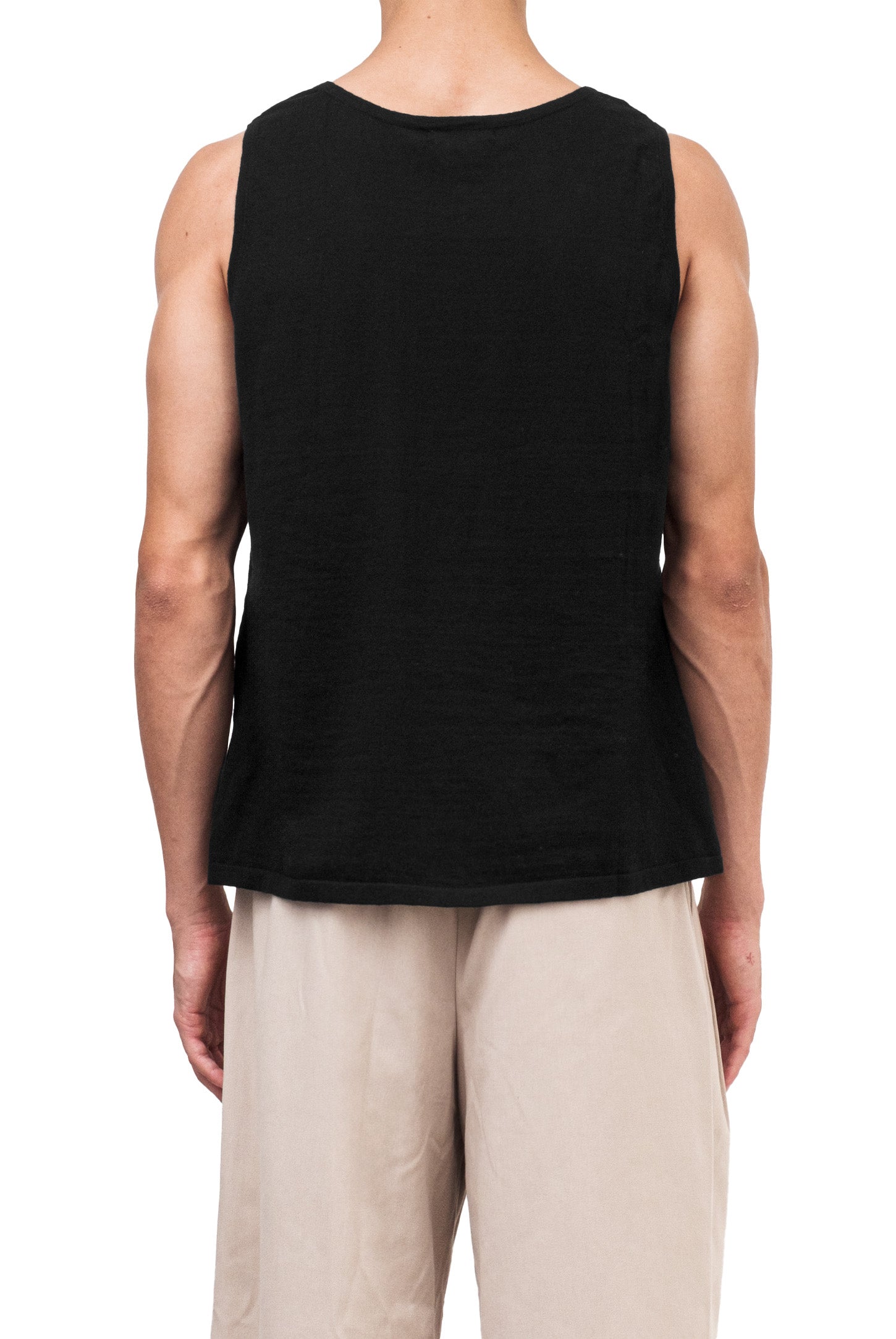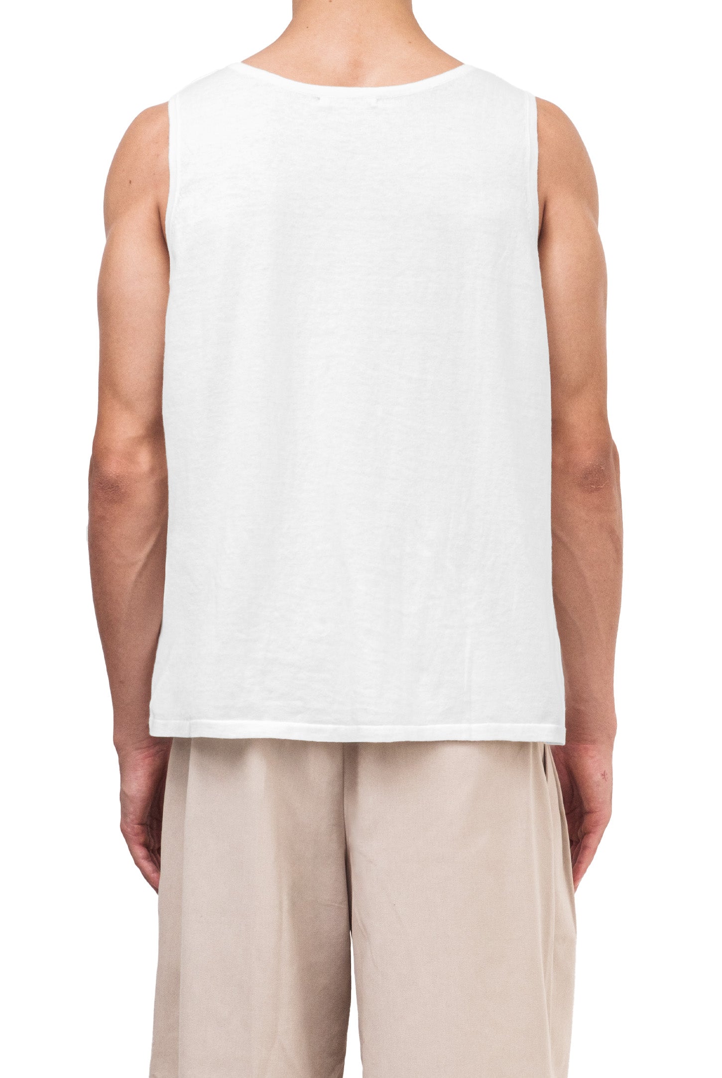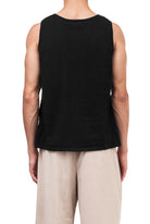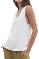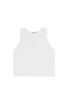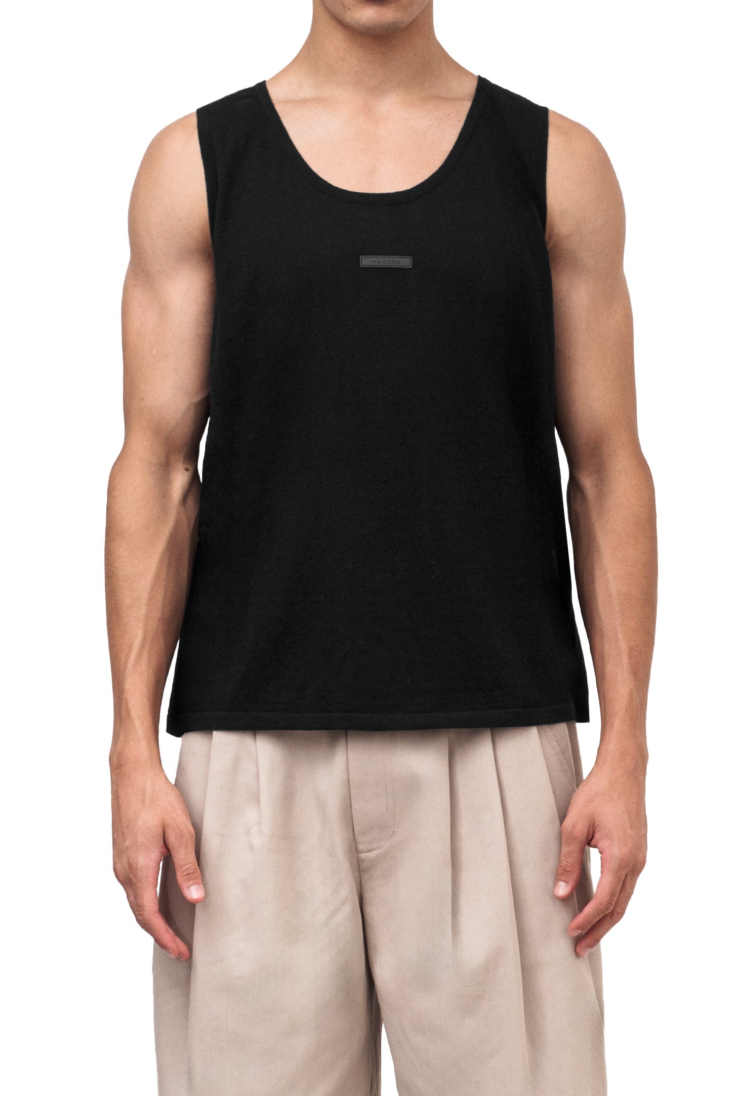 A unisex oversized sleeveless top with a scoop neckline and rubber patch logo.
