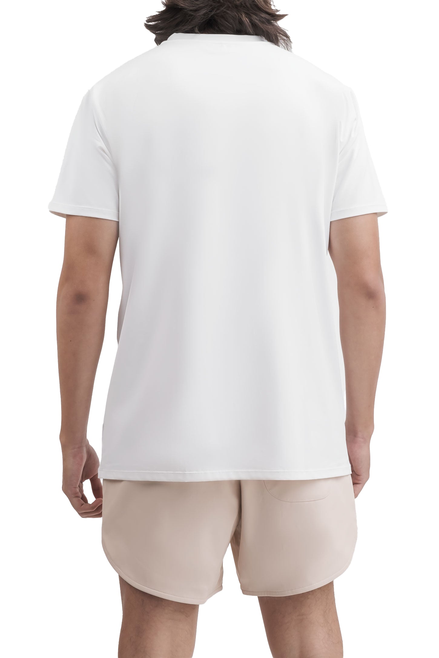 A lightweight performance shirt with a classic collar and silver reflective logo on the back. Made with Repreve; the leading, most trusted, branded performance fiber made from recycled materials.