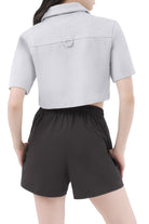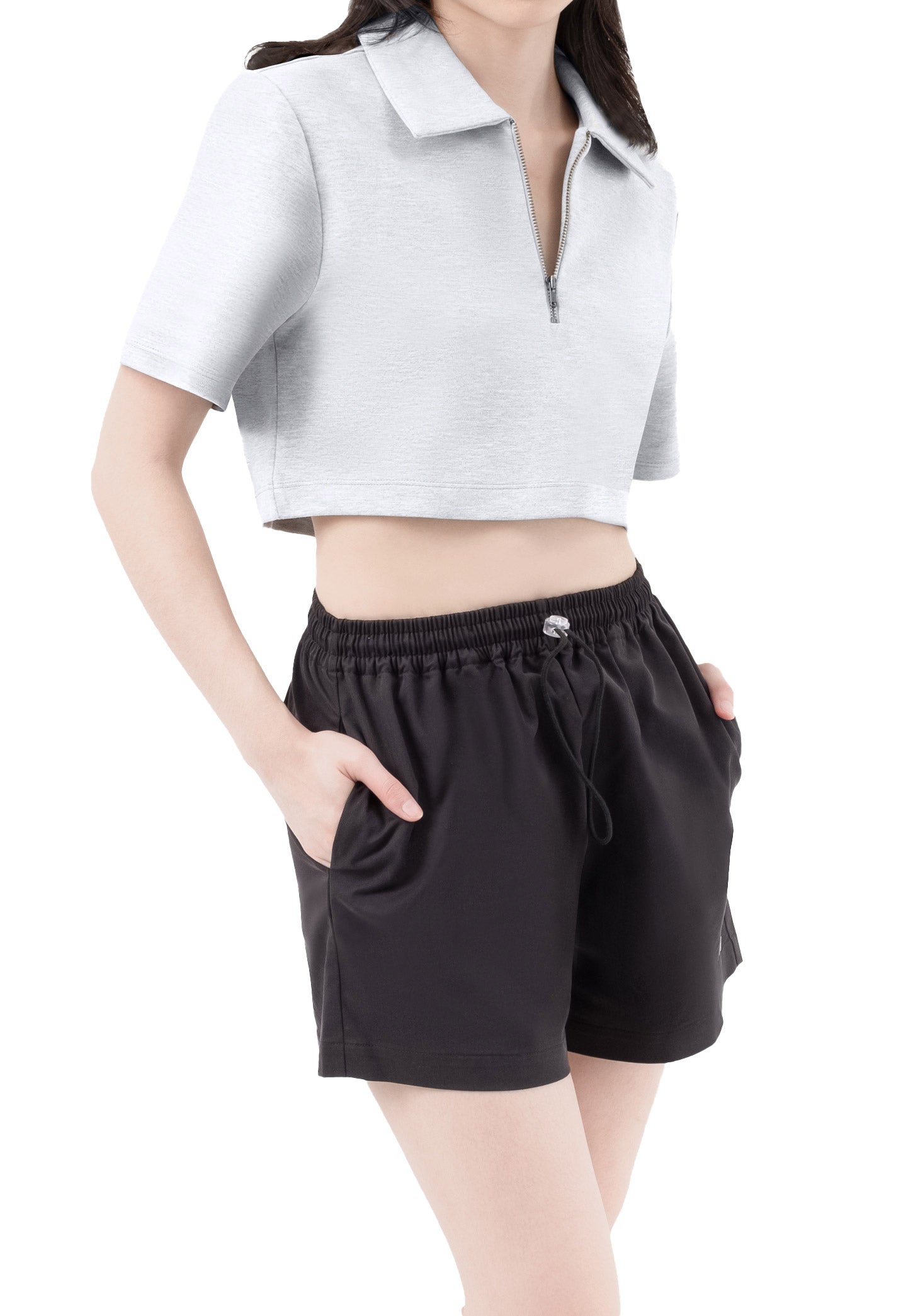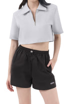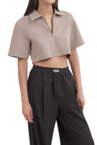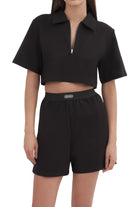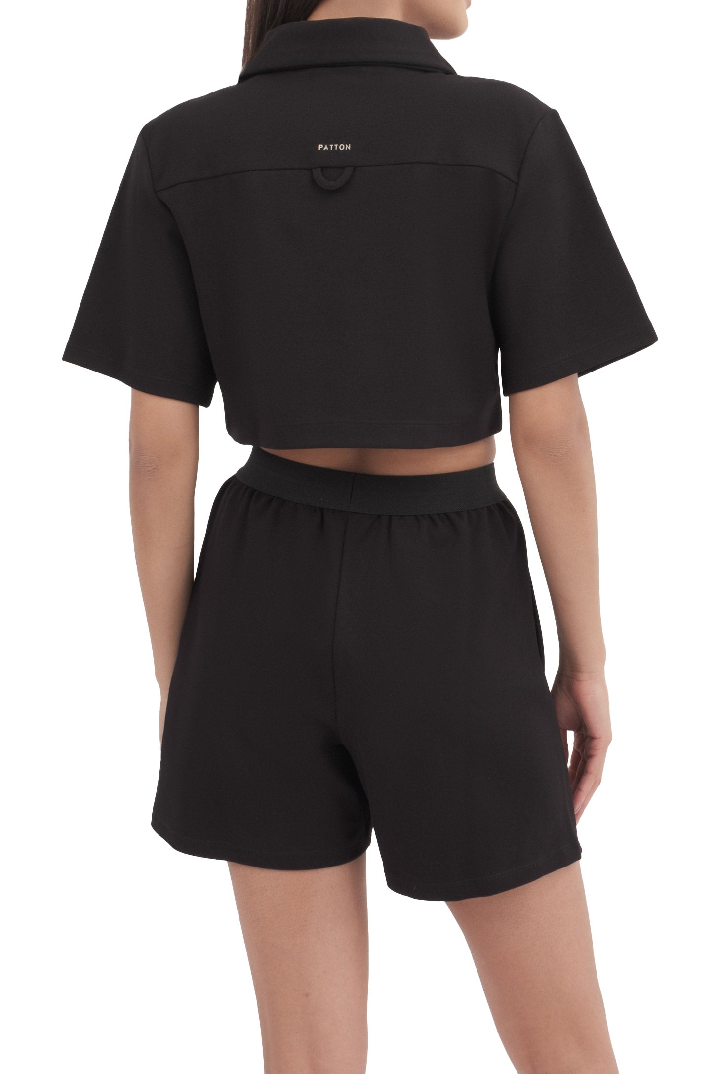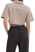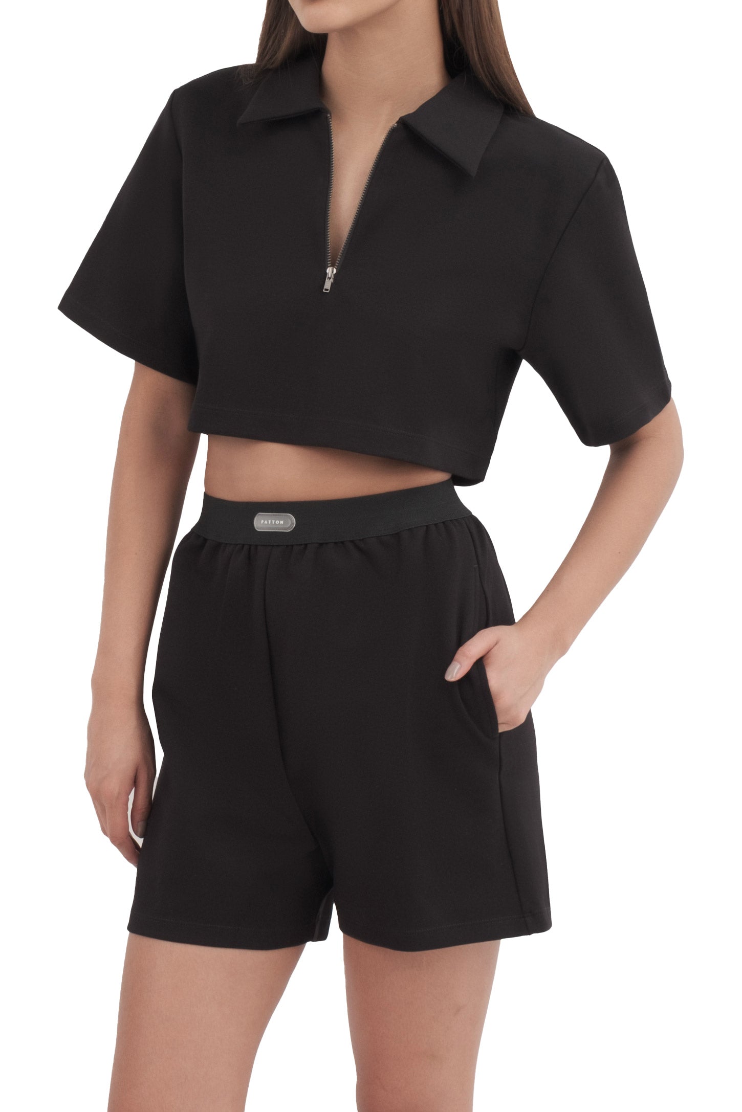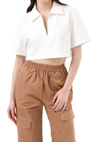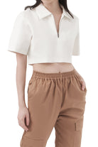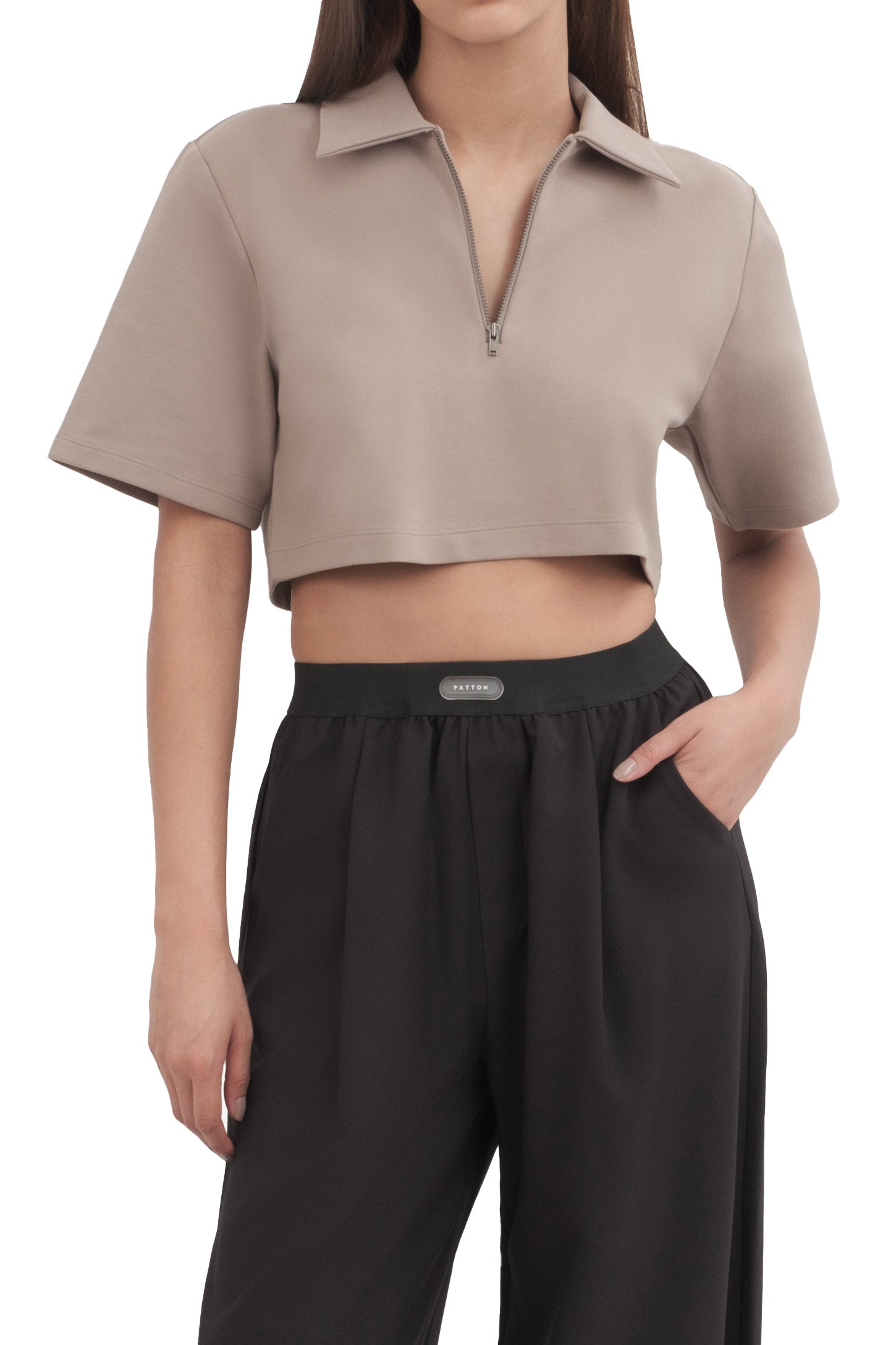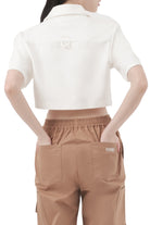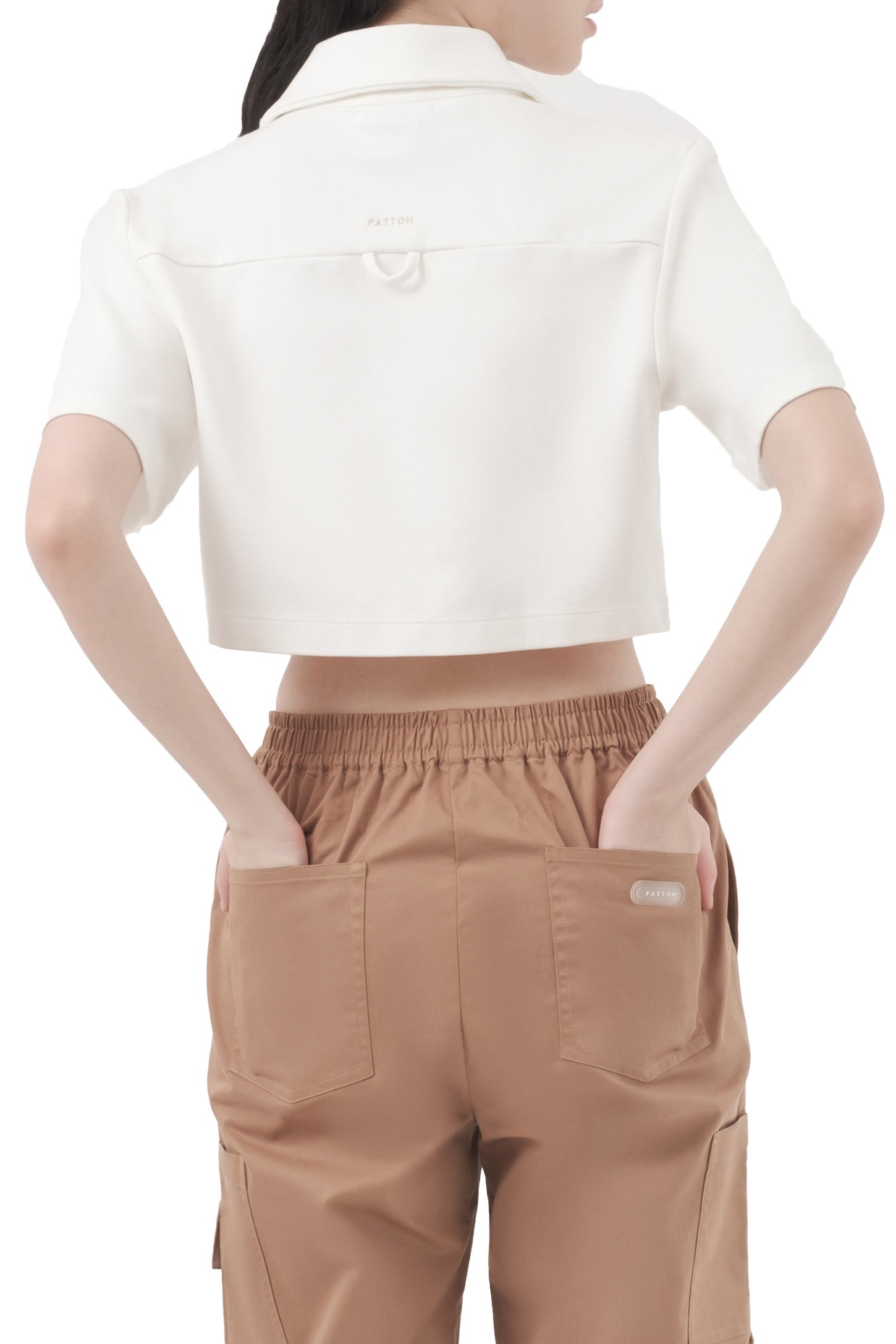 A loose-fit, short-sleeve top with a cropped length, classic collar, front zip fastening and an embroidered logo.